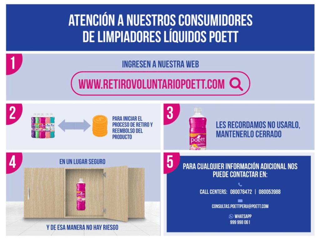 La contaminación, tal como mencionó Rodrigo Alvarado, Gerente General de Poett Perú -vía un video colgado en redes sociales- ha implicado un cambio de tuberías en la fábrica. Cabe indicar, que el Perú consumía el Poett producido localmente.