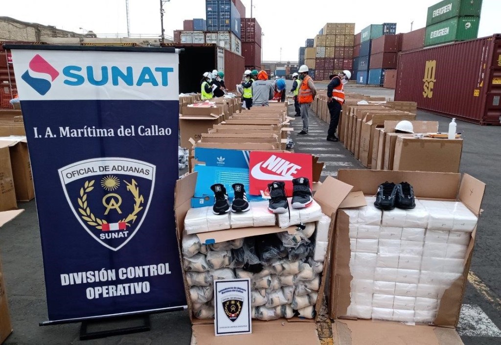 La Superintendencia Nacional de Adunas y de Administración Tributaria (SUNAT) intervino un cargamento de 6,958 pares de zapatillas, de las marcas Nike y Adidas, que se habían importado al país ocultas en cajas de servilletas, pretendiendo venderlas ilegalmente y perjudicando a los comerciantes formales que sí cumplen con sus obligaciones tributarias y aduaneras.
