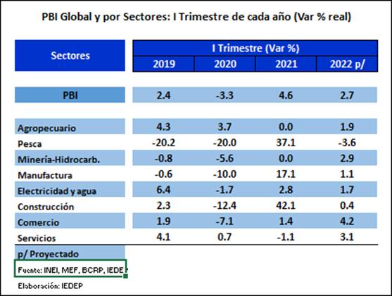 En tanto, el sector minería e hidrocarburos crecería 2,9% en un contexto de precios altos de metales y demanda exterior. Este resultado significa una recuperación si se compara con sus similares trimestres del 2021 y 2020, cuyos reportes se mantuvieron en negativo debido a la pandemia.