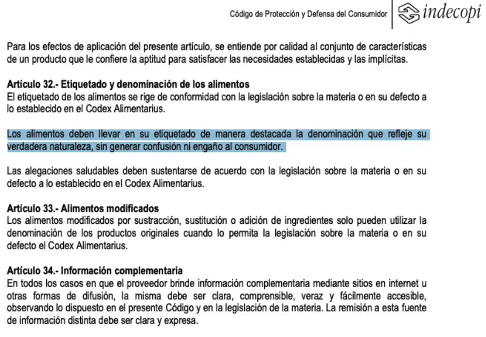 CHECK 3: También nos recomendó revisar el Código de Protección al Consumidor, subcapítulo II Protección de los consumidores en los alimentos, artículo Etiquetado y denominación de los alimentos.