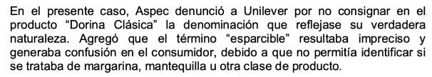 En este caso también en el año 2012, el tribunal declara fundada la misma, por la omisión de consignar en el etiquetado del producto “Dorina Clásica” la denominación que reflejaba su verdadera naturaleza.