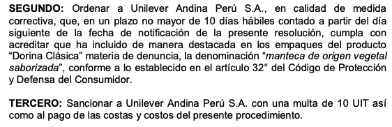 En el año 2012 el Tribunal de Indecopi aplicó una multa de 10 UIT a la empresa y ordenó la modificación de las etiquetas.