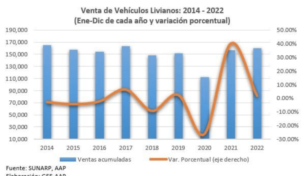 “La comercialización de vehículos nuevos terminó el 2022 con resultados dispares, en donde la venta de vehículos livianos y pesados mostró una expansión en ambos casos, mientras que la de vehículos menores registró una caída”, así lo sostuvo Alberto Morisaki, gerente de Estudios Económicos y Estadística de la Asociación Automotriz del Perú (AAP) luego de revisar cifras de SUNARP y constatar que la venta de vehículos livianos llegó en diciembre pasado a 12,660 unidades, culminando el 2022 con 159,814 unidades vendidas, cifra superior en 1.7% respecto al año anterior.
