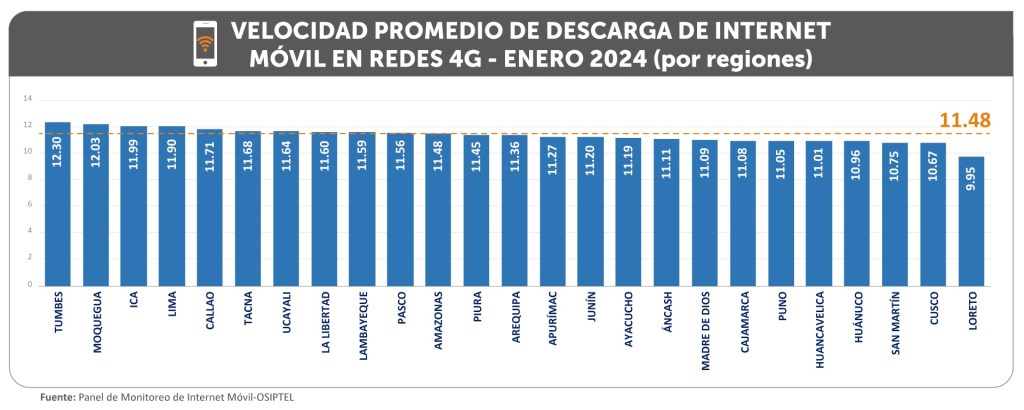 Las otras dos regiones que completan el podio son Moquegua e Ica, con velocidades de 12.03 Mbps y 11.99 Mbps, respectivamente. Por otro lado, algunas regiones como Huancavelica, Huánuco y San Martín registraron los desempeños más bajos en cuanto a velocidad de internet móvil.