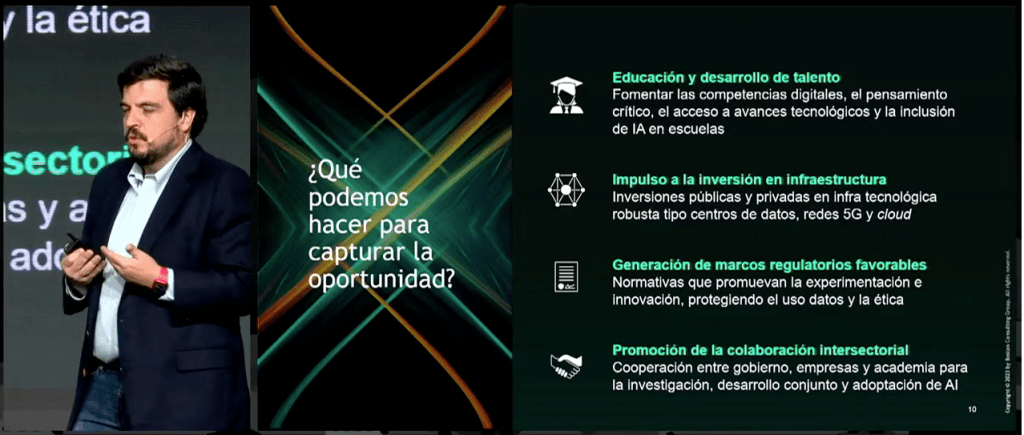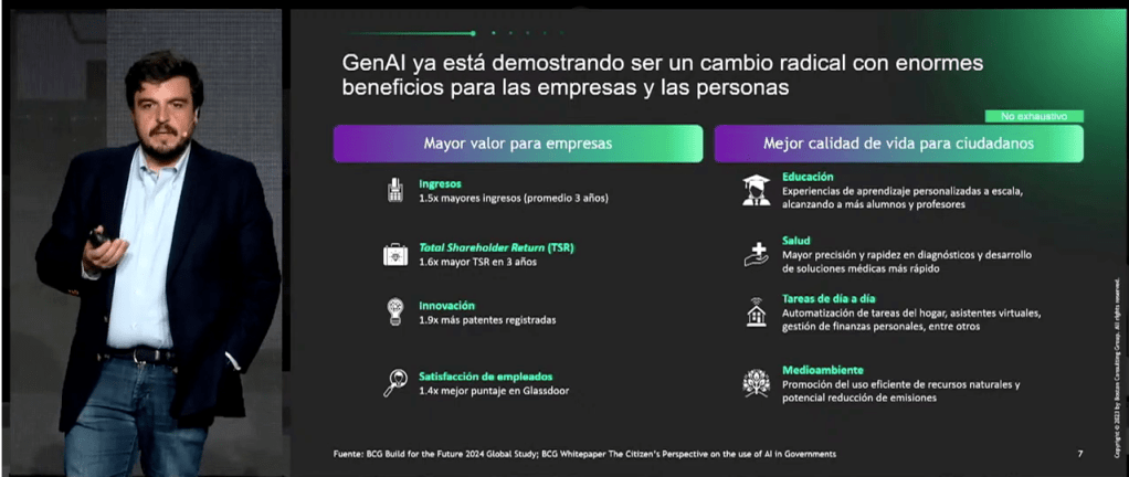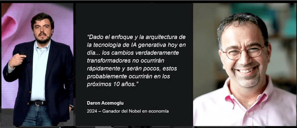 Durante la 62° edición de CADE Ejecutivos, uno de los eventos empresariales más importantes del Perú, se llevó a cabo la sesión “Desmitificando la Inteligencia Artificial: ¿Puede realmente transformar la productividad en América Latina?”, liderada por Julián Herman, socio y director de Boston Consulting Group (BCG) en Chile. En su presentación, Herman abordó las brechas y oportunidades que enfrenta América Latina, incluyendo el Perú, para integrar la inteligencia artificial (IA) en los negocios y mejorar la competitividad.