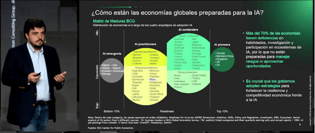 Según Herman, aunque está comprobado que las empresas que adoptan la IA son más rentables, las economías de la región aún no están preparadas para aprovechar completamente esta tecnología. “Latinoamérica tiene un nivel de exposición a la inteligencia artificial muy bajo comparado con otras regiones del mundo,” explicó. Este rezago, según el experto, se debe principalmente a tres grandes brechas: la falta de talento con competencias digitales, la limitada disponibilidad de datos y la insuficiente infraestructura tecnológica.