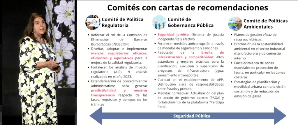 Ana Rosa Valdivieso, alta representante para la adhesión del Perú a la OCDE, subrayó cómo las reformas estructurales que impulsa este proceso son clave para modernizar el Estado y fortalecer la democracia. “Un Perú que aspira a ser parte de la OCDE necesita construir instituciones sólidas que promuevan la formalización, la inclusión y la transparencia,” afirmó. Valdivieso destacó que estas reformas no solo buscan mejorar la eficiencia del aparato estatal, sino también generar confianza en un momento donde la polarización política amenaza la cohesión social.