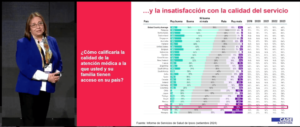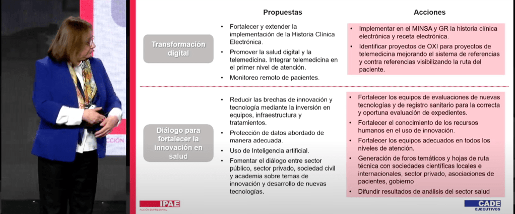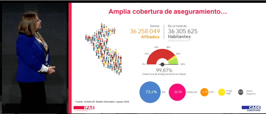 En la 62° edición de CADE Ejecutivos, se presentó una propuesta ambiciosa que busca garantizar un sistema de salud universal inclusivo, eficiente y sostenible para todos los peruanos. Midori de Habich, miembro del Comité de Salud de IPAE Acción Empresarial, señaló que, aunque el aseguramiento universal ha reducido las barreras económicas, todavía existen desafíos importantes relacionados con la calidad de los servicios. “Un sistema de salud universal no solo debe garantizar acceso, sino también servicios de alta calidad que generen confianza en los ciudadanos,” destacó.