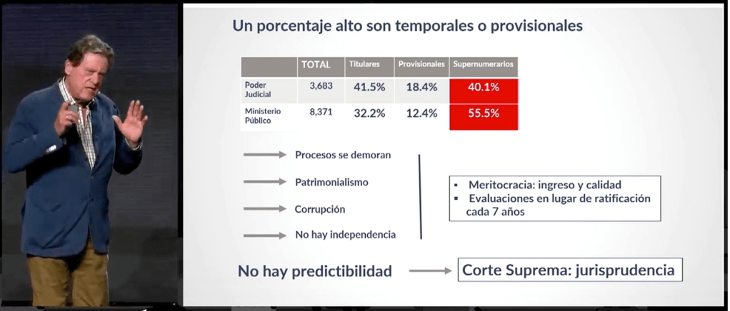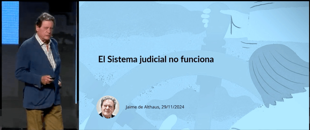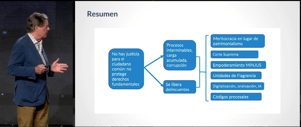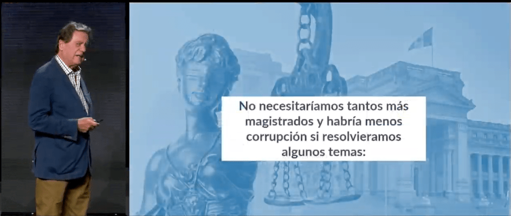 De Althaus también mencionó que un sistema judicial eficiente es clave para atraer inversión privada, ya que genera un entorno de predictibilidad. “La justicia lenta es igual a justicia negada. Si queremos un país competitivo, necesitamos un sistema que resuelva con rapidez y transparencia, eliminando la burocracia que hoy lo paraliza,” afirmó, haciendo un llamado a la acción conjunta entre el Estado y el sector privado.