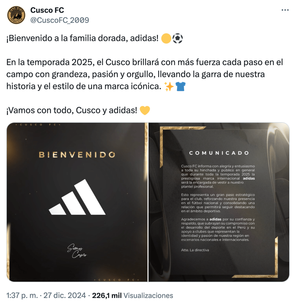 Adidas sigue demostrando ser un actor esencial en el panorama deportivo global, impulsando no solo el rendimiento de los atletas, sino también el crecimiento de los clubes y la industria deportiva en general. A través de su asociación con Cusco FC, la marca alemana no solo respalda el deporte en Perú, sino que contribuye al fortalecimiento de la economía deportiva local. Este acuerdo no es solo una victoria para el club, sino también un ejemplo de cómo las marcas deportivas globales pueden influir positivamente en mercados emergentes, contribuyendo al desarrollo del deporte y la economía en el camino.