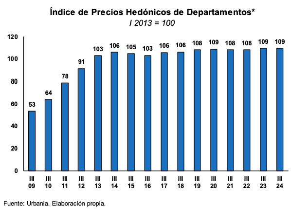 El índice hedónico utiliza una metodología que permite controlar las variaciones de los precios causadas por los cambios en las características de los inmuebles, como la ubicación del departamento o el número de habitaciones. Esta metodología resulta esencial para obtener una visión más precisa de la evolución de los precios, eliminando las distorsiones derivadas de las diferencias en las propiedades. A través de este índice, se obtiene una estimación más clara de las tendencias de precios en el mercado inmobiliario, lo que es de particular interés para los inversionistas y los desarrolladores, quienes necesitan datos precisos para tomar decisiones informadas.