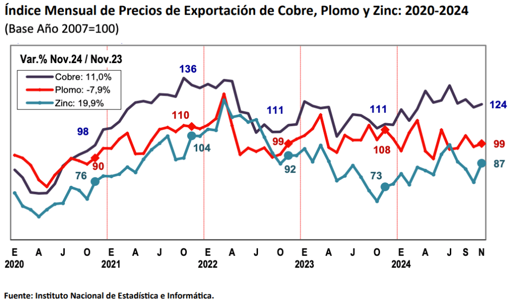 En noviembre de 2024, el comportamiento de los precios de los bienes de exportación e importación mostró una tendencia diferenciada, reflejando tanto oportunidades como desafíos para la economía peruana. En términos generales, los precios de exportación aumentaron, mientras que los de importación experimentaron una caída notable, lo que podría tener implicaciones tanto positivas como negativas para los consumidores y las empresas locales.