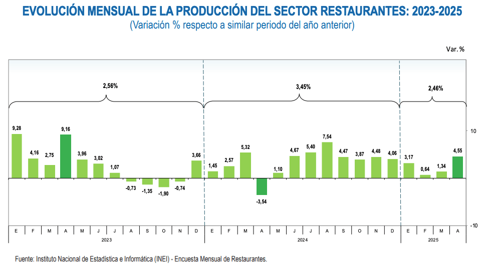 - CRECIMIENTO: El sector de restaurantes creció 4,55% en abril 2025, impulsado por feriados, innovación y campañas gastronómicas.
